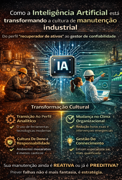 A maior revolução da Inteligência Artificial na manutenção industrial não está apenas nos sensores, algoritmos ou dashboards. Ela está na mudança de mentalidade.